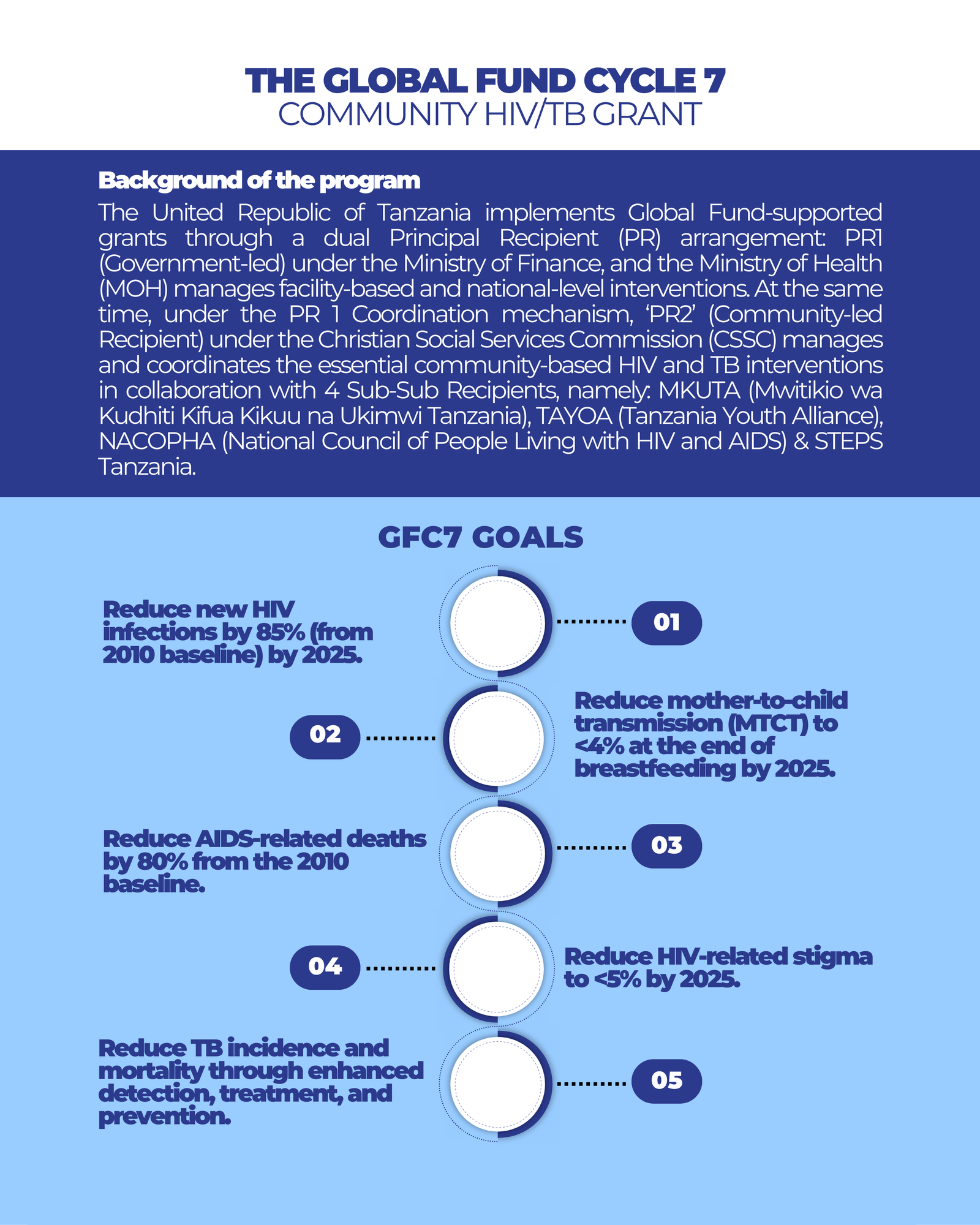 Goals of the Global Fund Cycle 7 Community HIV/TB Grant in Tanzania